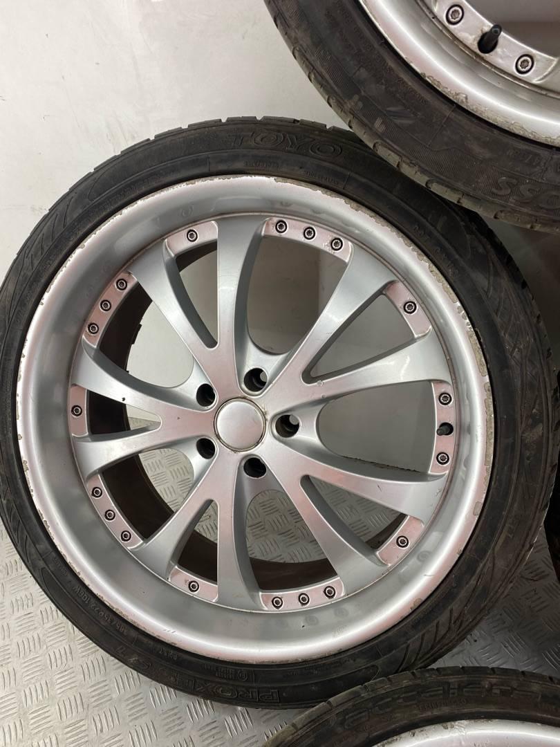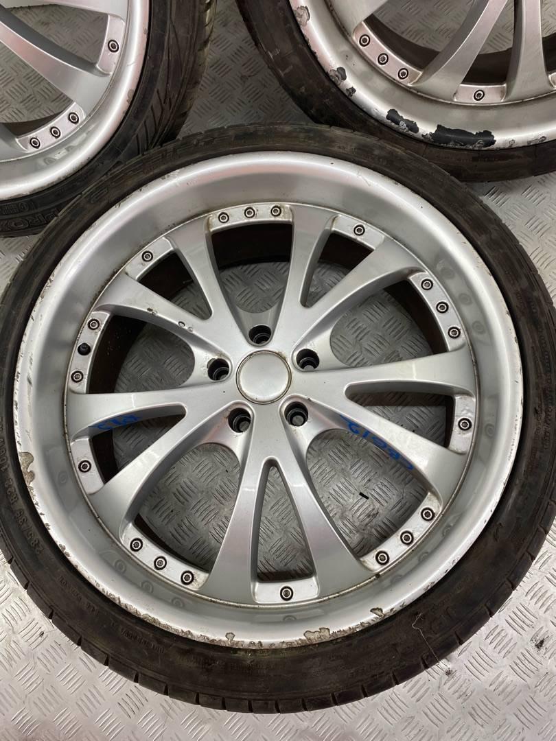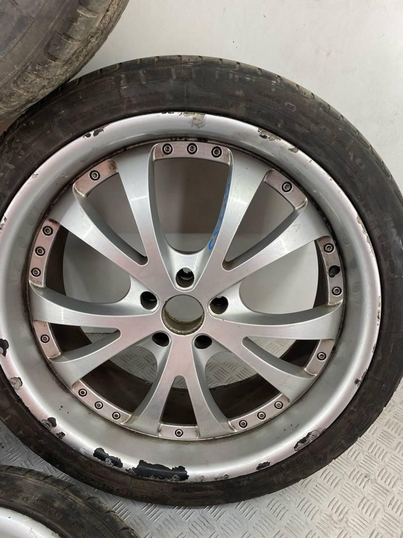 Комплект дисков, не оригинал Состояние: бордюрка, дефект лакокрасочного покрытия, нужно раскатывать(кривые) Диски 9,5 посадочная ET45 Резина не комплектная 285/35 R22. R22, ширина обода: 9.5, PCD 5x120 мм, DIA 72.6 мм, ET 45 мм. Шины: легковые, всесезонные, остаточная высота: 3мм.