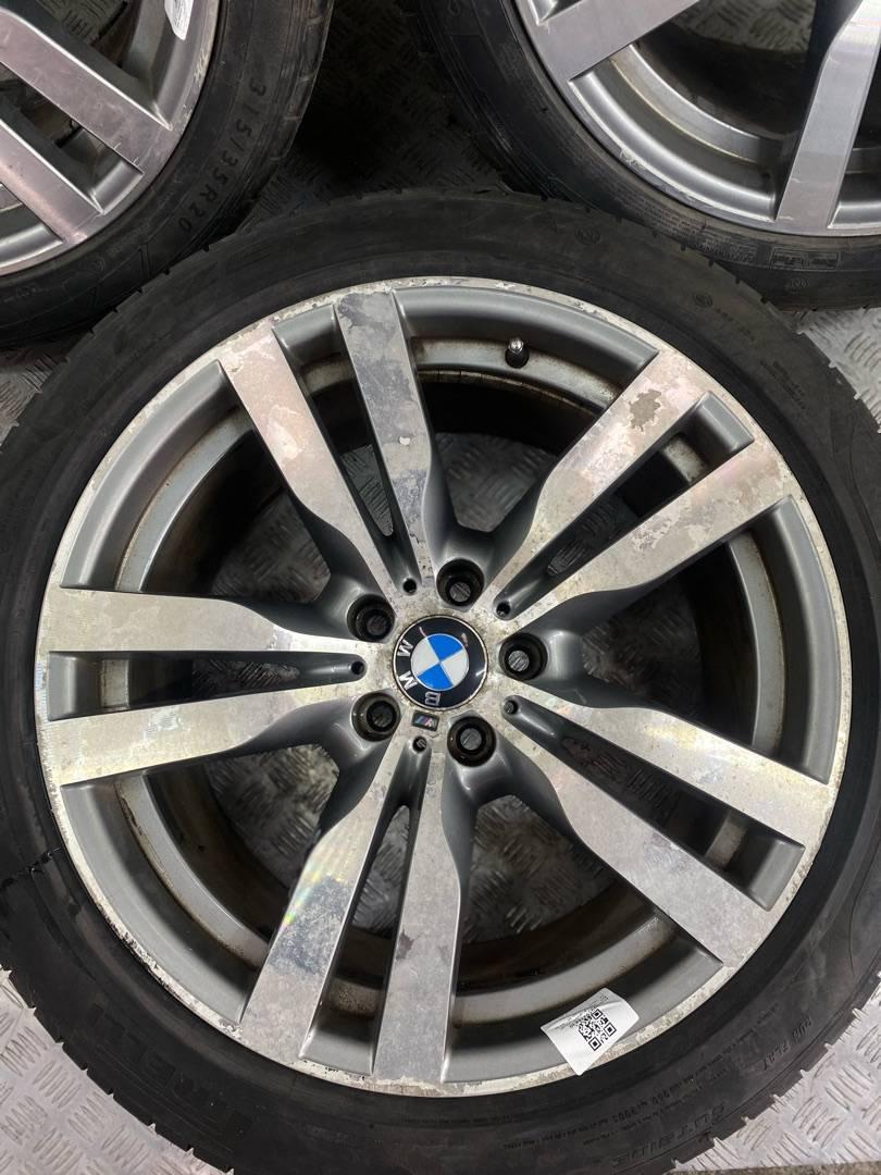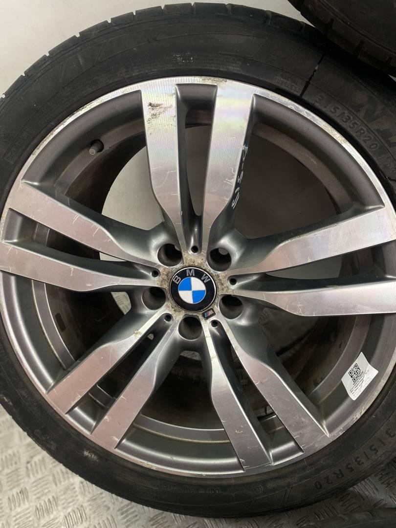 Комплект литых дисков 300 стиля, BMW X6M ОРИГИНАЛ. Разноширокие Параметры дисков передние 10x20 ET 40 задние 11x20 ET 35 Параметры резины передняя PIRELLI 275/40r20 2017 года остаток 4-5мм задние DUNLOP 315/35R20 2021 года с разным рисунком!!! остаток одного 5мм другого 3 мм. R20, ширина обода: 10, PCD 5x120 мм, DIA 74.1 мм, ET 40 мм. Шины: легковые, всесезонные, 2017, Run-flat, остаточная высота: 5мм.