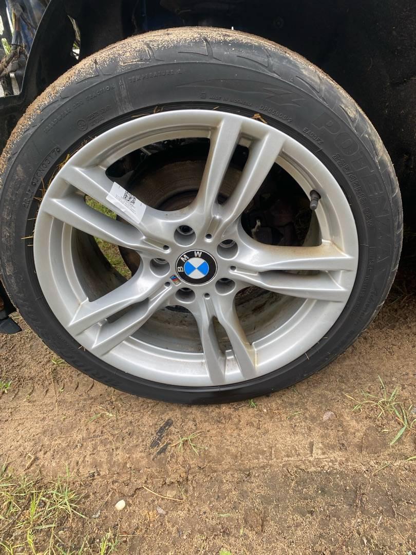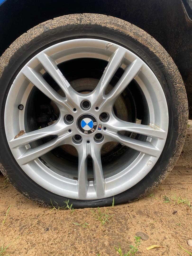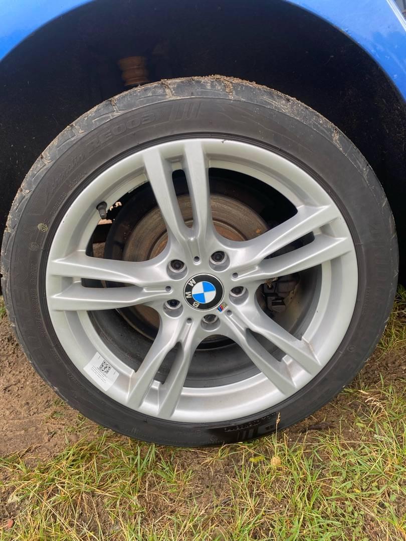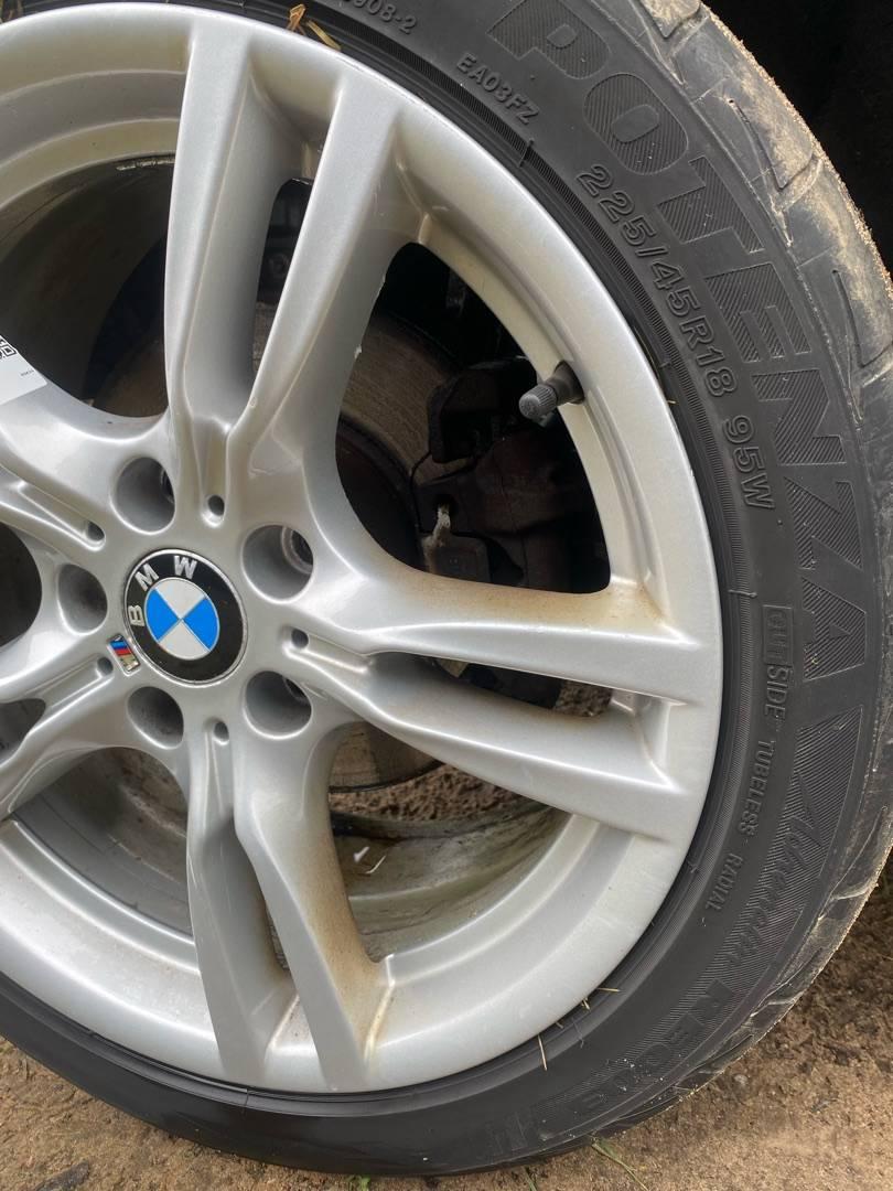Комплект литых дисков 400 стиля, разноширокие спереди J8 дюймов 225/45R18 ET 34 сзади J8.5 дюймов 255/40R18 ET47 Резина bridgestone остаток 4-5 мм. R18, ширина обода: 8, PCD 120 мм, ET 34 мм. Шины: легковые, всесезонные, 2017, остаточная высота: 4мм.